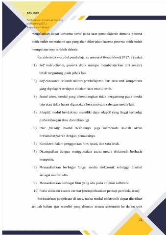 Karakteristik e-modul pembelajaran menurut Kemdikbud (2017: 3) yakni: