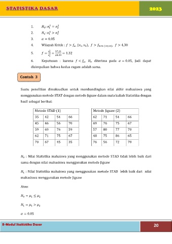 : Nilai Statistika mahaiswa yang menggunakan metode STAD lebih baik dari nilai