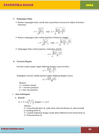 Sedangkan variansi untuk populasi dapat dihitung dengan rumus