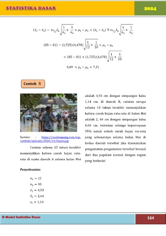 menunjukkan bahwa curah hujan rata- dari dua populasi normal dengan ragam