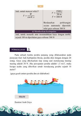 masing adalah 20 N. Jika percepatan perahu adalah 1,5 m/s , maka
