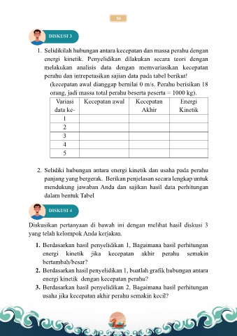 2. Selidiki hubungan antara energi kinetik dan usaha pada perahu