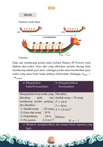 mendayung adalah gaya aksi), sehingga perahu akan memberikan gaya