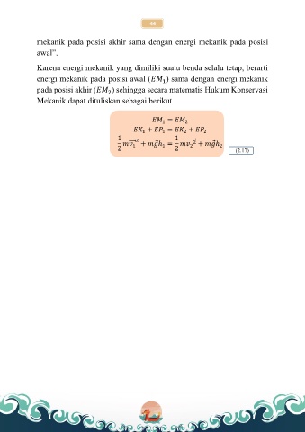energi mekanik pada posisi awal ( ) sama dengan energi mekanik