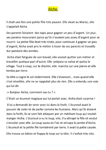 C’était un écureuil magique qui lui parlait avec. Aicha était surprise !