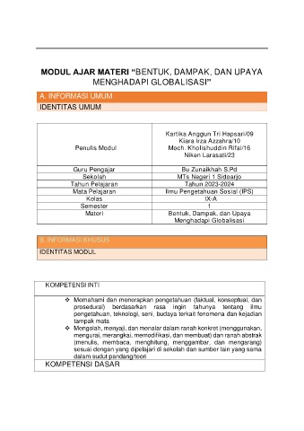 MODUL AJAR MATERI “BENTUK, DAMPAK, DAN UPAYA