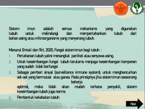 Menurut Erniati dan Riri, 2020, Fungsi sistem imun bagi tubuh :