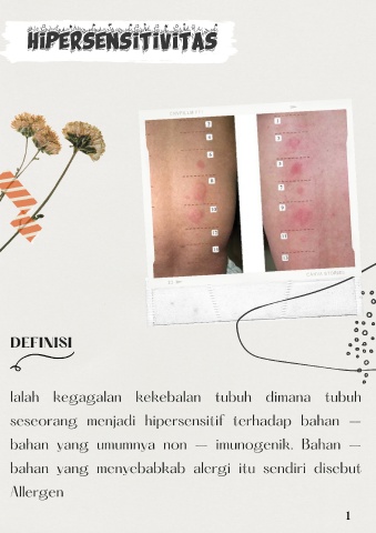HIPERSENSITIVITAS DEFINISI Ialah kegagalan kekebalan tubuh dimana tubuh seseorang menjadi hipersensitif terhadap bahan – bahan yang umumnya non – imunogenik. Bahan – bahan yang menyebabkab alergi itu sendiri disebut Allergen 1