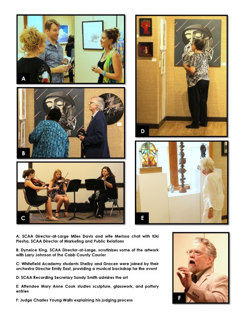 B: Dyneice King, SCAA Director-at-Large, scrutinizes some of the artwork