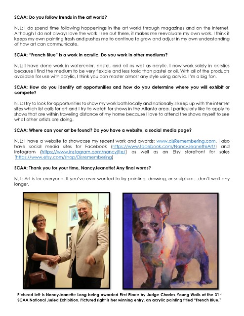 SCAA National Juried Exhibition. Pictured right is her winning entry, an acrylic painting titled “French Blue.”