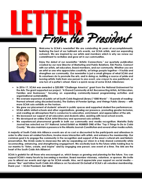 please “like” and follow South Cobb Arts Alliance on Facebook! On behalf of SCAA’s all-volunteer membership,