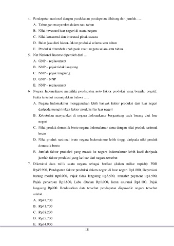 4. Pendapatan nasional dengan pendekatan pendapatan dihitung dari jumlah…..