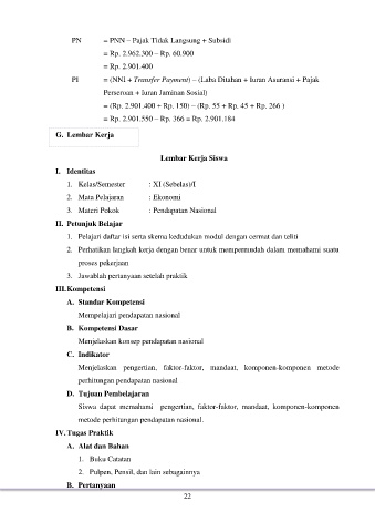 PN = PNN – Pajak Tidak Langsung + Subsidi
