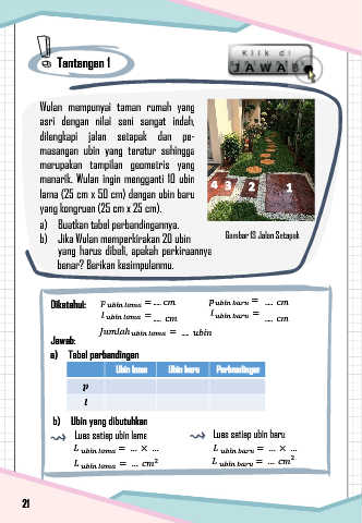 b) Jika Wulan memperkirakan 20 ubin Gambar 13 Jalan Setapak