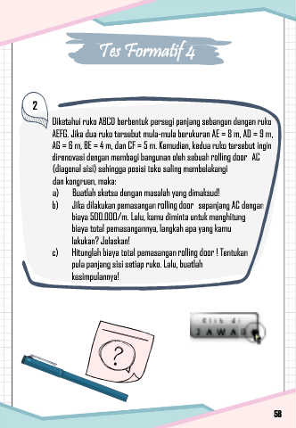 AG = 6 m, BE = 4 m, dan CF = 5 m. Kemudian, kedua ruko tersebut ingin