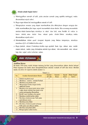 Pada kegiatan ini kamu akan mengidentifikasi amalan sunnah ab‟adh dan haiat. Berilah