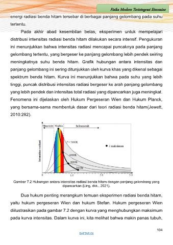 Gambar 7.2 Hubungan antara intensitas radiasi benda hitam dengan panjang gelombang yang