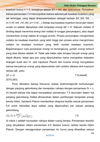 kuantum kedua n = 2, energinya adalah E2 = 2hf, dan seterusnya. Perhatikan