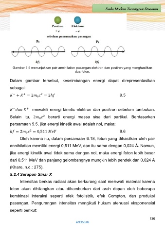 Gambar 9.5 menunjukkan pair annihilation pasangan elektron dan positron yang menghasilkan
