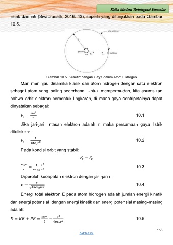 Gambar 10.5. Kesetimbangan Gaya dalam Atom Hidrogen