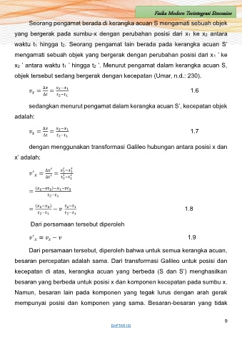 sedangkan menurut pengamat dalam kerangka acuan S’, kecepatan objek