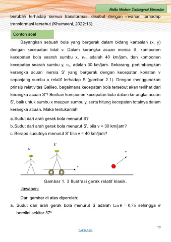b. Sudut dari arah gerak bola menurut S’, bila v = 30 km/jam?