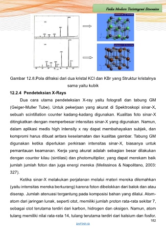 Gambar 12.8.Pola difraksi dari dua kristal KCl dan KBr yang Struktur kristalnya