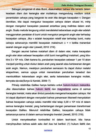 bahwa kecepatan cahaya selalu memiliki nilai tetap 3,00 x 10 m/s di dalam