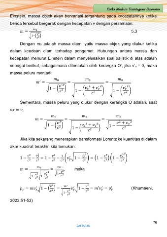 Dengan m0 adalah massa diam, yaitu massa objek yang diukur ketika