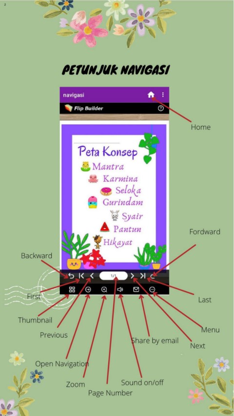 PETUNJUK NAVIGASI Home Fordward Backward First Last Thumbnail Menu Previous Share by email Next Open Navigation Zoom Sound on/off Page Number