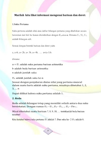 Misal diketahui suatu barisan 7, 8, 9, 10, … tentukanlah beda barisan