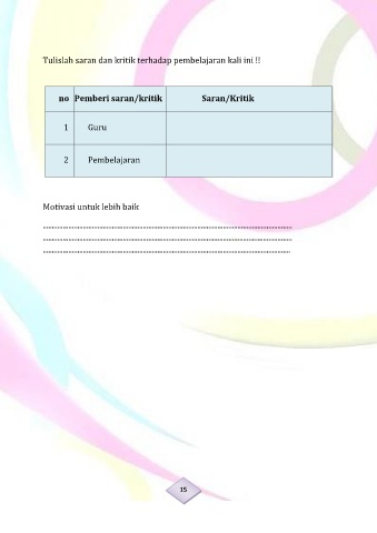 Tulislah saran dan kritik terhadap pembelajaran kali ini !!