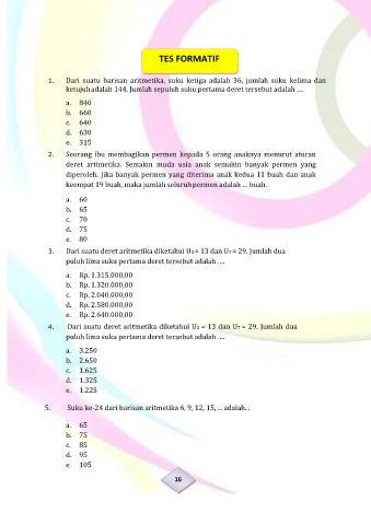 1. Dari suatu barisan aritmetika, suku ketiga adalah 36, jumlah suku kelima dan