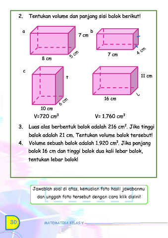 balok adalah 21 cm. Tentukan volume balok tersebut!