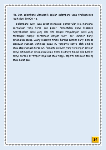 Hz. Dan gelombang ultrasonik adalah gelombang yang frekuensinya