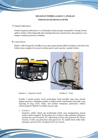 aplikasi induksi elektromagnetik pada teknologi khsusnya transformator dan generator serta