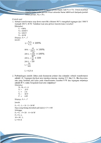 transformator maka jumlah lilitan sekunder harus lebih kecil daripada jumlah