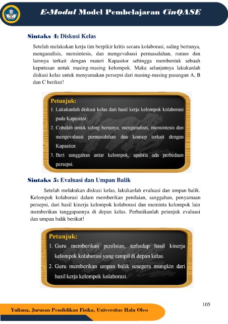 memberikan tanggapannya di depan kelas. Perhatikanlah petunjuk evaluasi