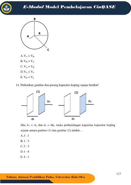 Jika A = A dan d = 4d , maka perbandingan kapasitas kapasitor keping