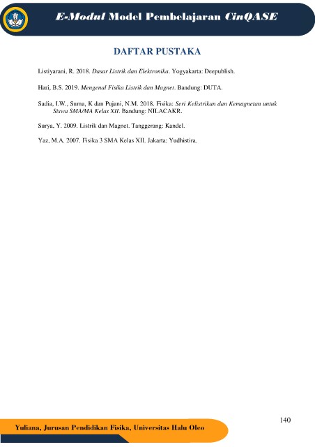 Sadia, I.W., Suma, K dan Pujani, N.M. 2018. Fisika: Seri Kelistrikan dan Kemagnetan untuk