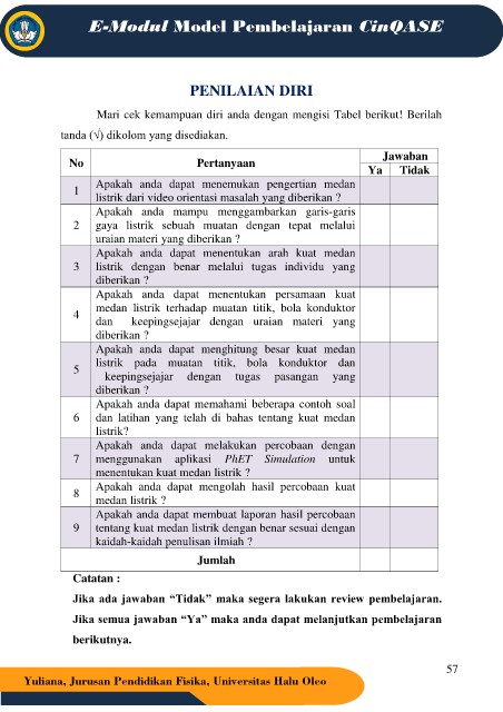 Jika ada jawaban “Tidak” maka segera lakukan review pembelajaran.