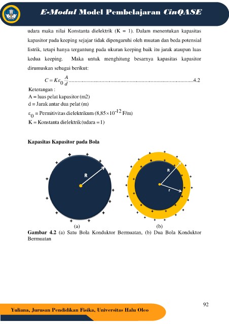 udara maka nilai Konstanta dielektrik (K = 1). Dalam menentukan kapasitas