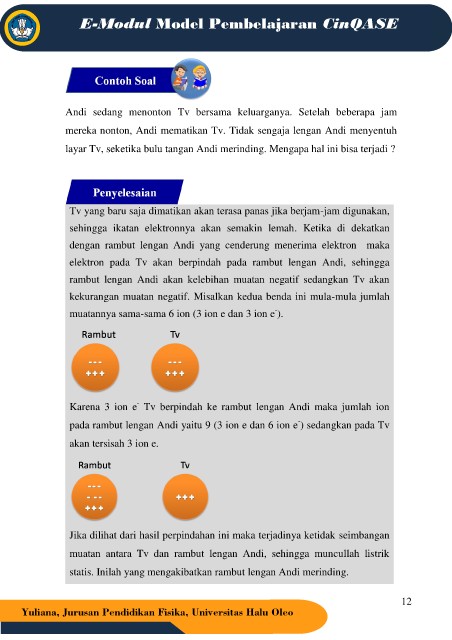 Karena 3 ion e Tv berpindah ke rambut lengan Andi maka jumlah ion