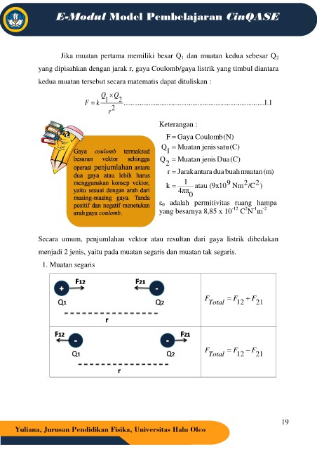 yang dipisahkan dengan jarak r, gaya Coulomb/gaya listrik yang timbul diantara