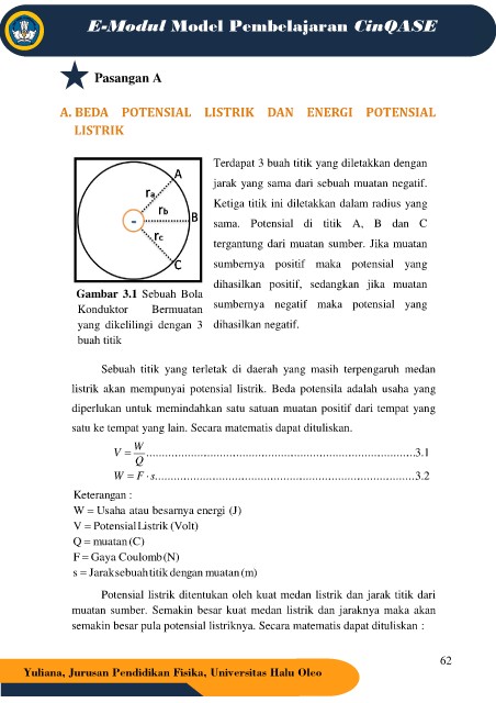 listrik akan mempunyai potensial listrik. Beda potensila adalah usaha yang