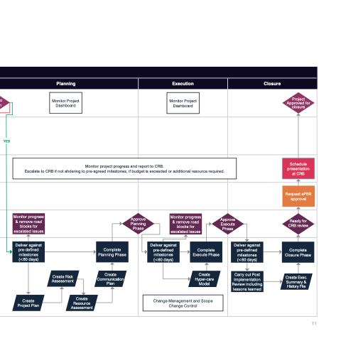 Escalate to CRB if not ahdering to pre-agreed milestones, if budget is exceeded or additional resource required.