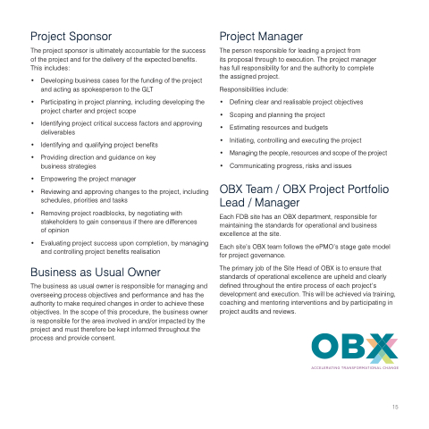 Each FDB site has an OBX department, responsible for maintaining the standards for operational and business excellence at the site.