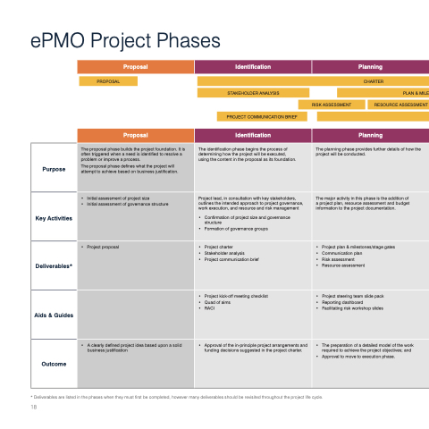 * Deliverables are listed in the phases when they must first be completed, however many deliverables should be revisited throughout the project life cycle.