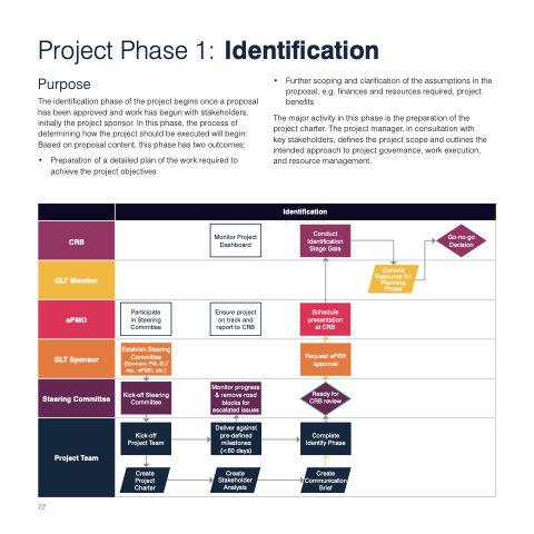The identification phase of the project begins once a proposal has been approved and work has begun with stakeholders, initially the project sponsor. In this phase, the process of determining how the project should be executed will begin. Based on proposal content, this phase has two outcomes: