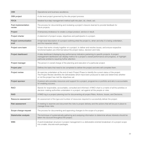 Stands for responsible, accountable, consulted and informed. A RACI chart is a matrix of all the activities or decision making authorities undertaken in a project, set against all the people or roles.